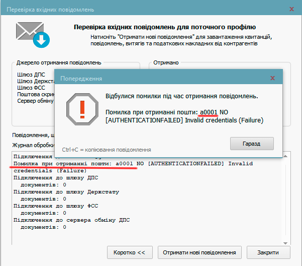 Помилка “а0001” при перевірці пошти сервера gmail.com